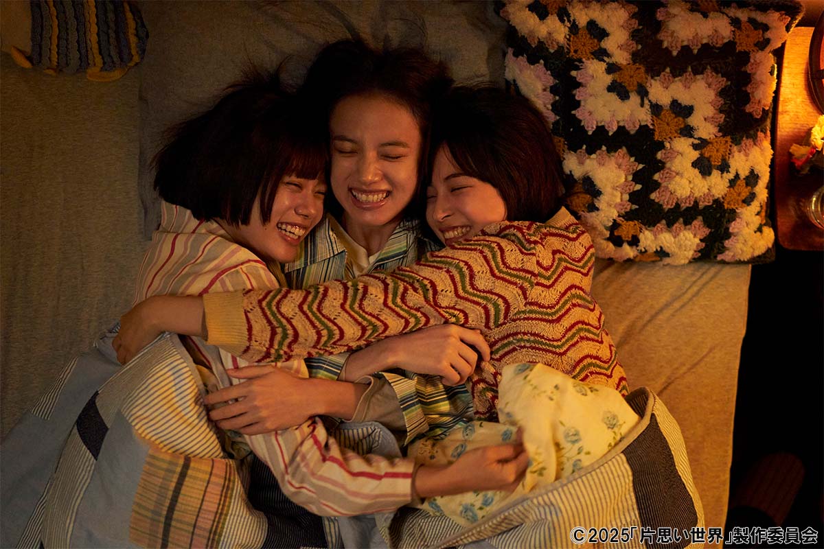 大ヒットを記録した「花束みたいな恋をした」(2021年公開)の脚本家・坂元裕二と監督・土井裕泰が、2024年に再びタッグを組んだ映画「片思い世界」。広瀬すず、杉咲花、清原果耶と、若手実力派を代表する3人の俳優が主演を務めことでも注目を集めた。 美咲(広瀬)、優花(杉咲)、さくら(清原)は、東京の片隅にある古い一軒家に3人で暮らしている。それぞれ仕事、学校、アルバイトに毎日出かけて行き、帰宅したら夕飯を一緒に食べる。リビングでおしゃべりをして、同じ寝室で眠り、朝には3人で歯を磨く。誕生日にサプライズをしたりと、気ままで穏やかな日々を送っている。ある日、2人で乗ったバスの中で、さくらは美咲がある男性に視線を送っていることに気付く。帰宅後、早速そのことを話題にしたさくらは、優花と一緒になって「本当に片思いのままでいいの?」「告白しなよ」と美咲に言う。しかし、美咲は「絶対にできないことを何で言うの」と不機嫌な様子で...。